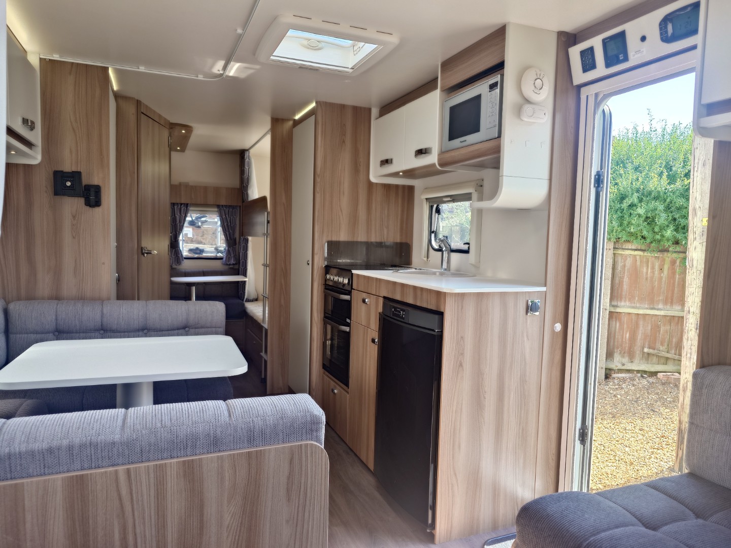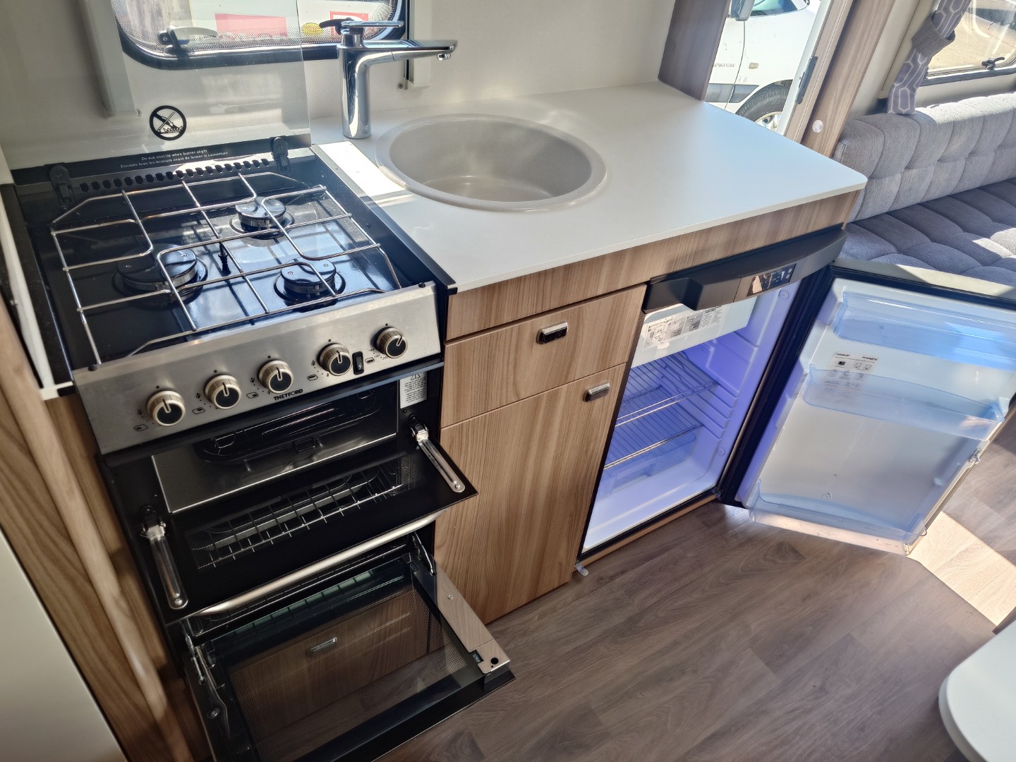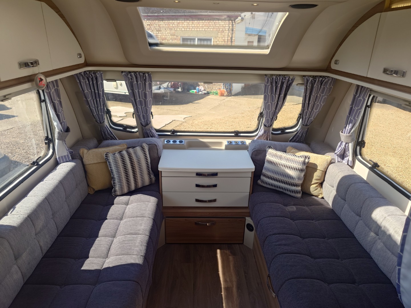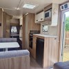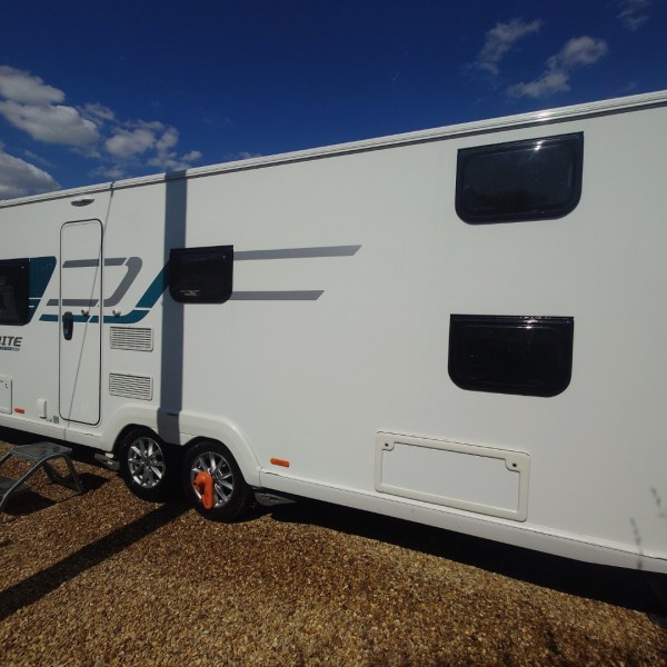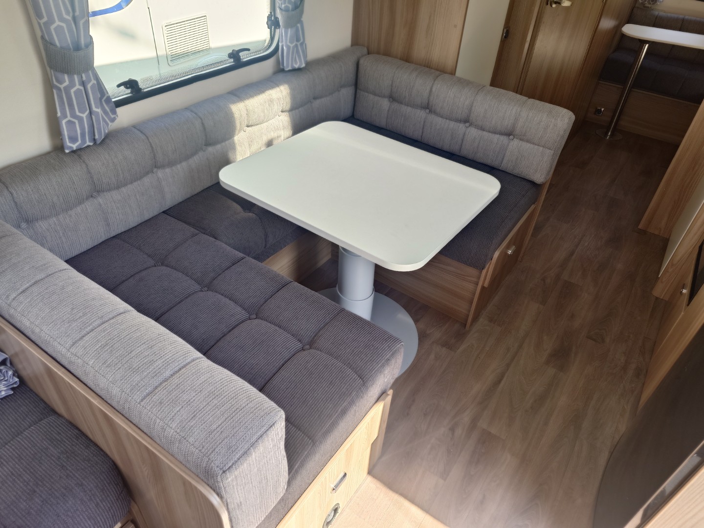 For sale we have this stunning 8ft wide 6 berth Sprite Super Quattro DB. The front seating area makes into a brilliant sized double bed and the the side u shaped dinette makes into another bed. At the rear of the caravan is a fixed bunk bed with a seat and table for the kids to use and then at the rear side is also a washroom with the toilet and shower separate as opposed to a wet room style. The interior and exterior has a real stylish design making it a excellent choice to use for all your caravan holidays be it touring or seasonally sited. Comes fitted with Powrtouch Motormovers all round making manoeuvring much easier with it being a twin axle. Thule bike rack is also fitted to the rear of the Super Quattro making bringing any bikes on holiday much simpler. Only thing we have noticed is that the pull round curtain for the side dinette has a little rip on the inside layer but nothing that affects the use of the curtain. For more information call us on 01485 601212 or come and view it for yourself! Our full stocklist can be found on our website – www.johnwickscaravans.com