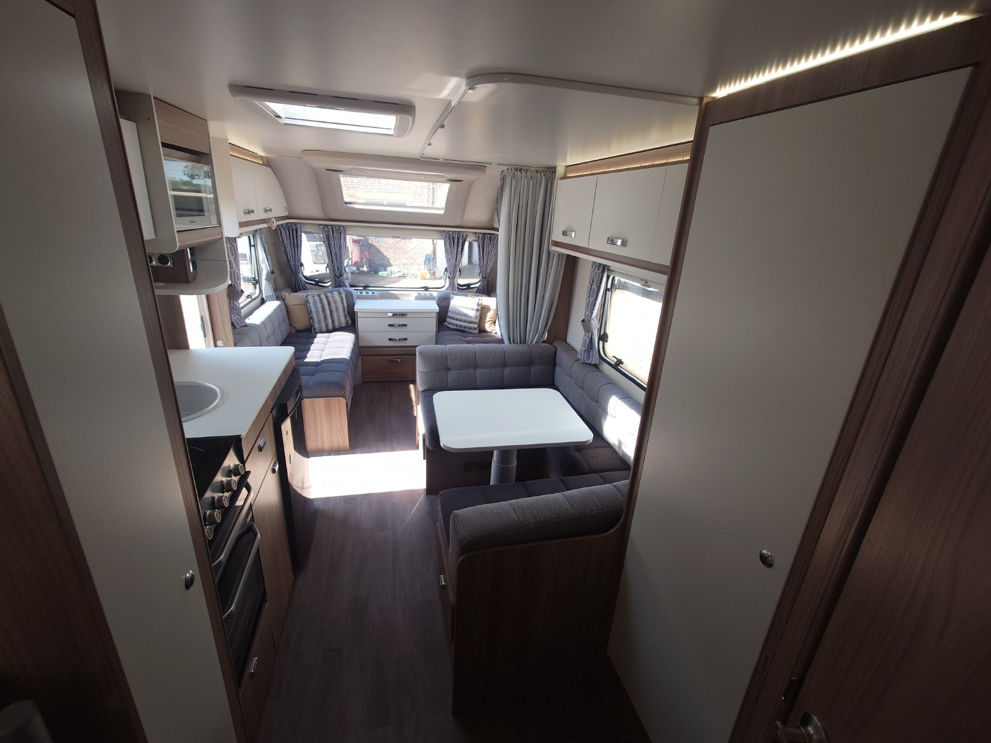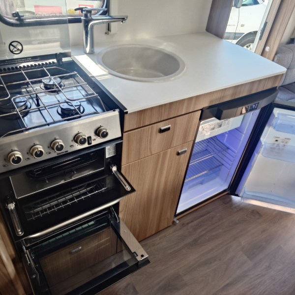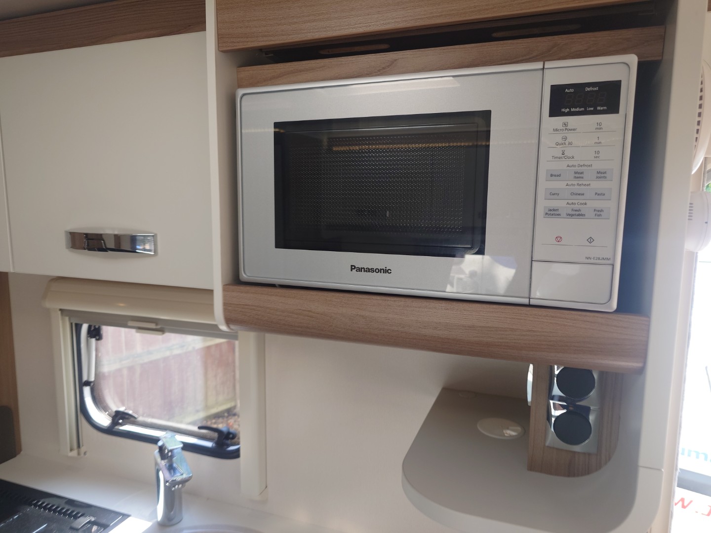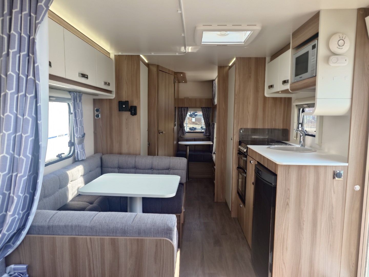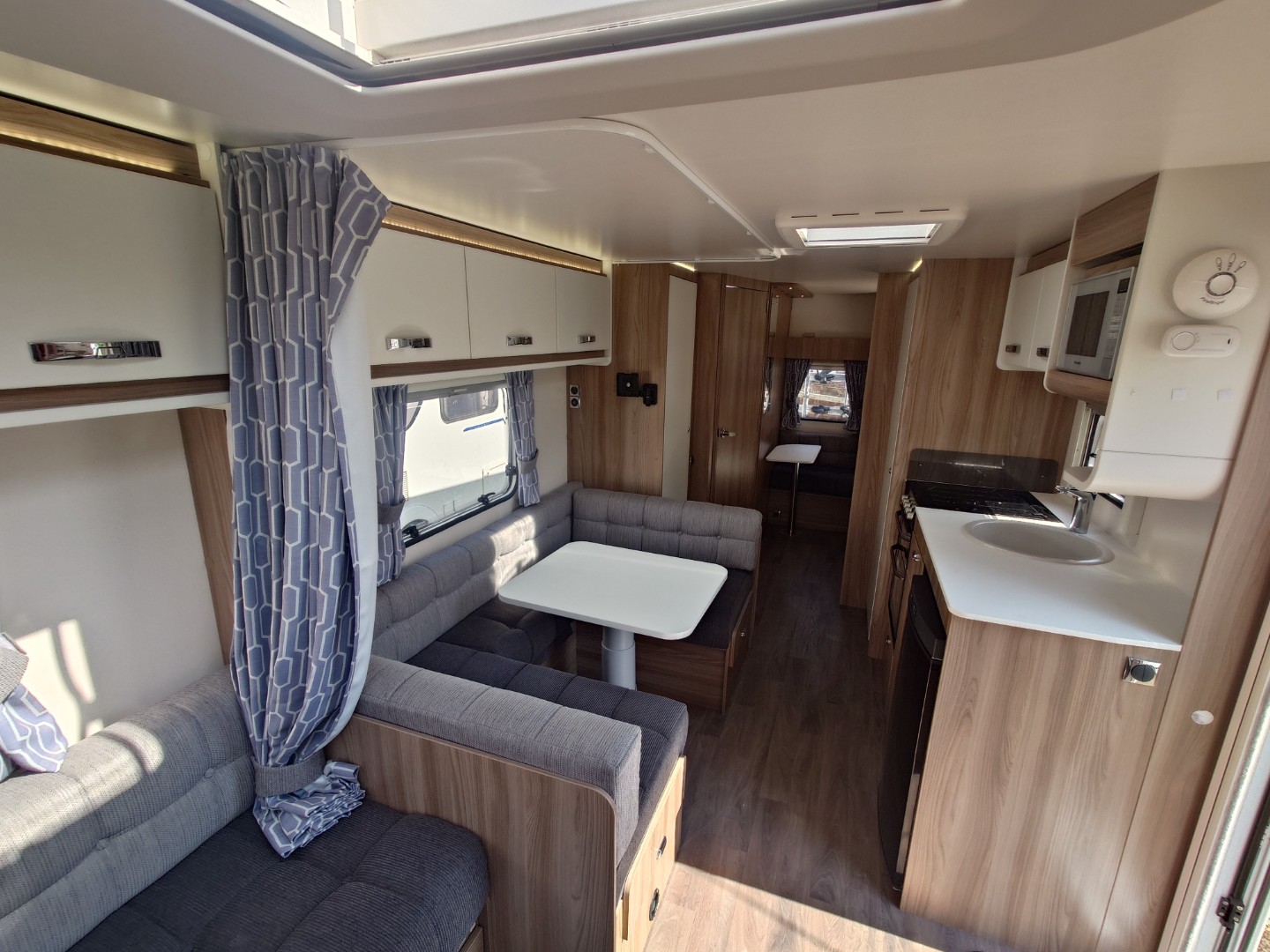 For sale we have this stunning 8ft wide 6 berth Sprite Super Quattro DB. The front seating area makes into a brilliant sized double bed and the the side u shaped dinette makes into another bed. At the rear of the caravan is a fixed bunk bed with a seat and table for the kids to use and then at the rear side is also a washroom with the toilet and shower separate as opposed to a wet room style. The interior and exterior has a real stylish design making it a excellent choice to use for all your caravan holidays be it touring or seasonally sited. Comes fitted with Powrtouch Motormovers all round making manoeuvring much easier with it being a twin axle. Thule bike rack is also fitted to the rear of the Super Quattro making bringing any bikes on holiday much simpler. Only thing we have noticed is that the pull round curtain for the side dinette has a little rip on the inside layer but nothing that affects the use of the curtain. For more information call us on 01485 601212 or come and view it for yourself! Our full stocklist can be found on our website – www.johnwickscaravans.com